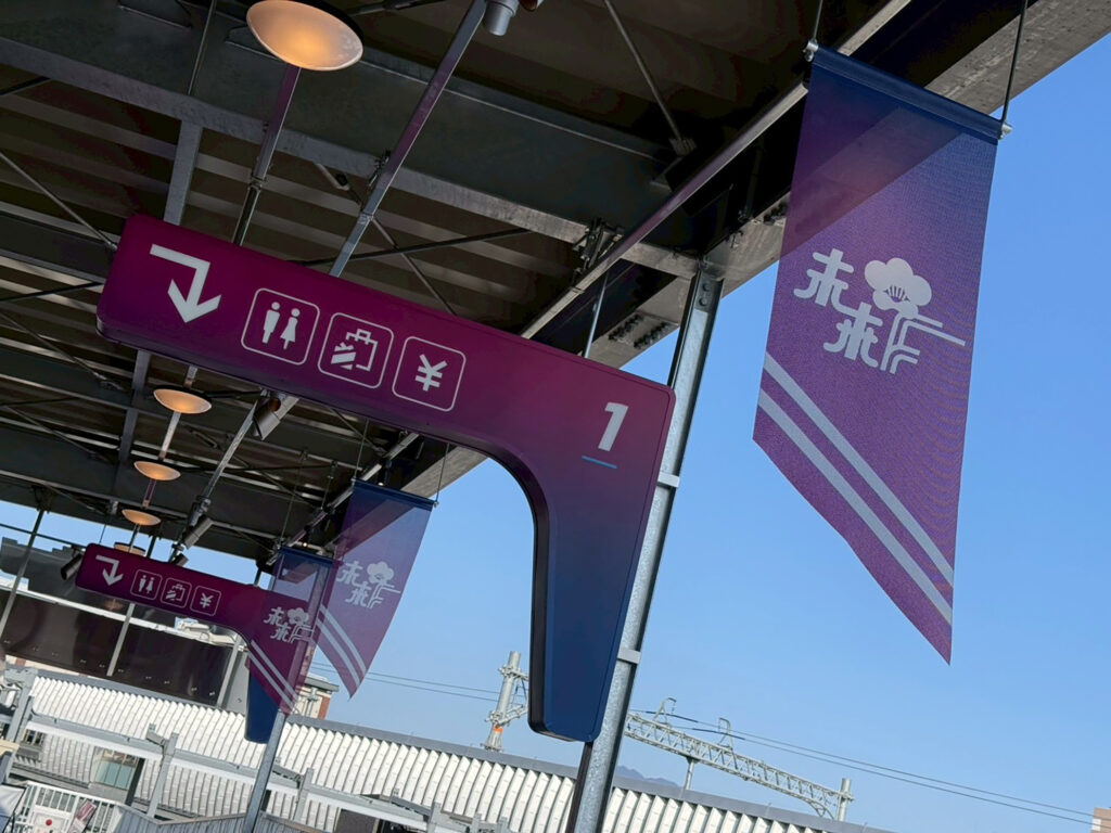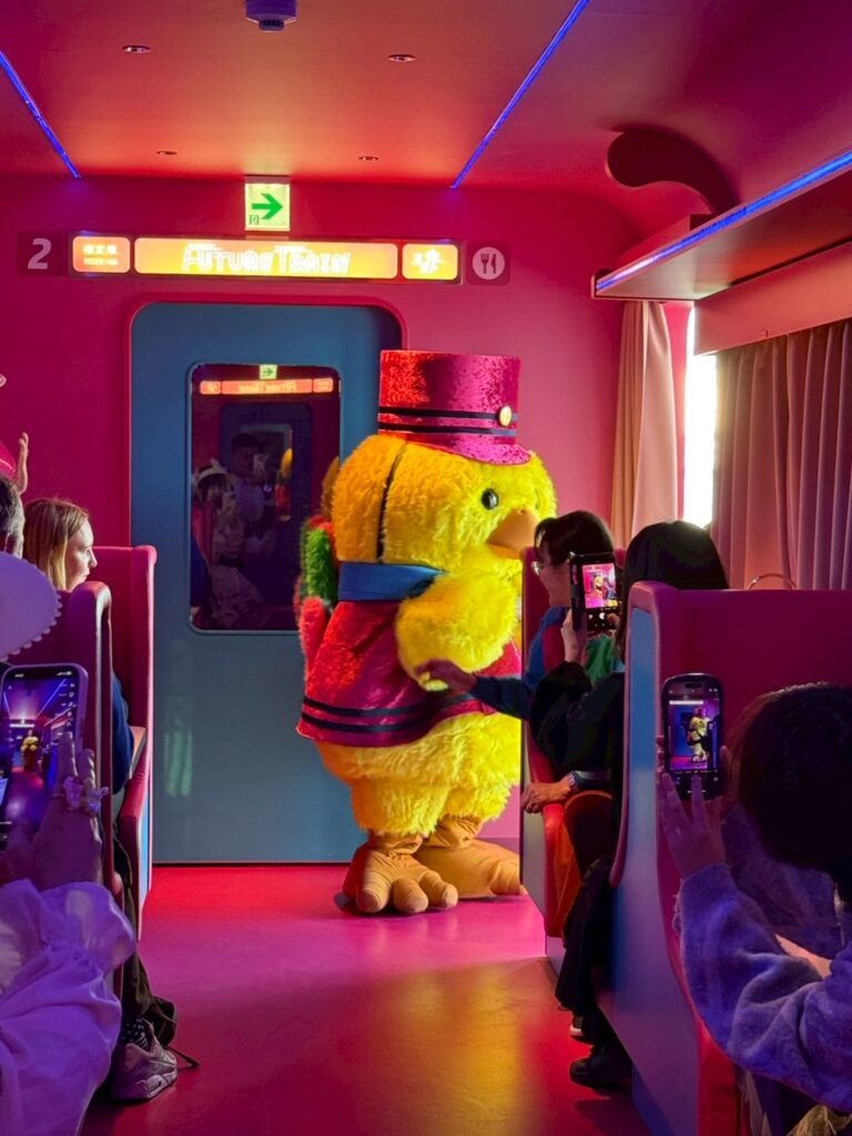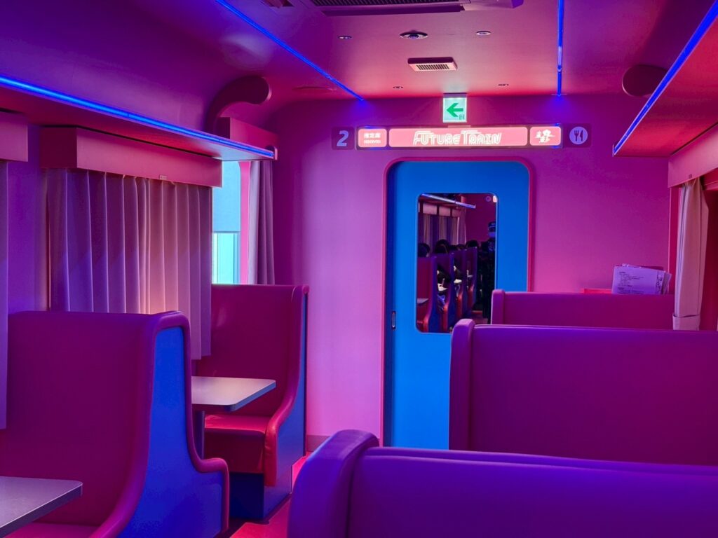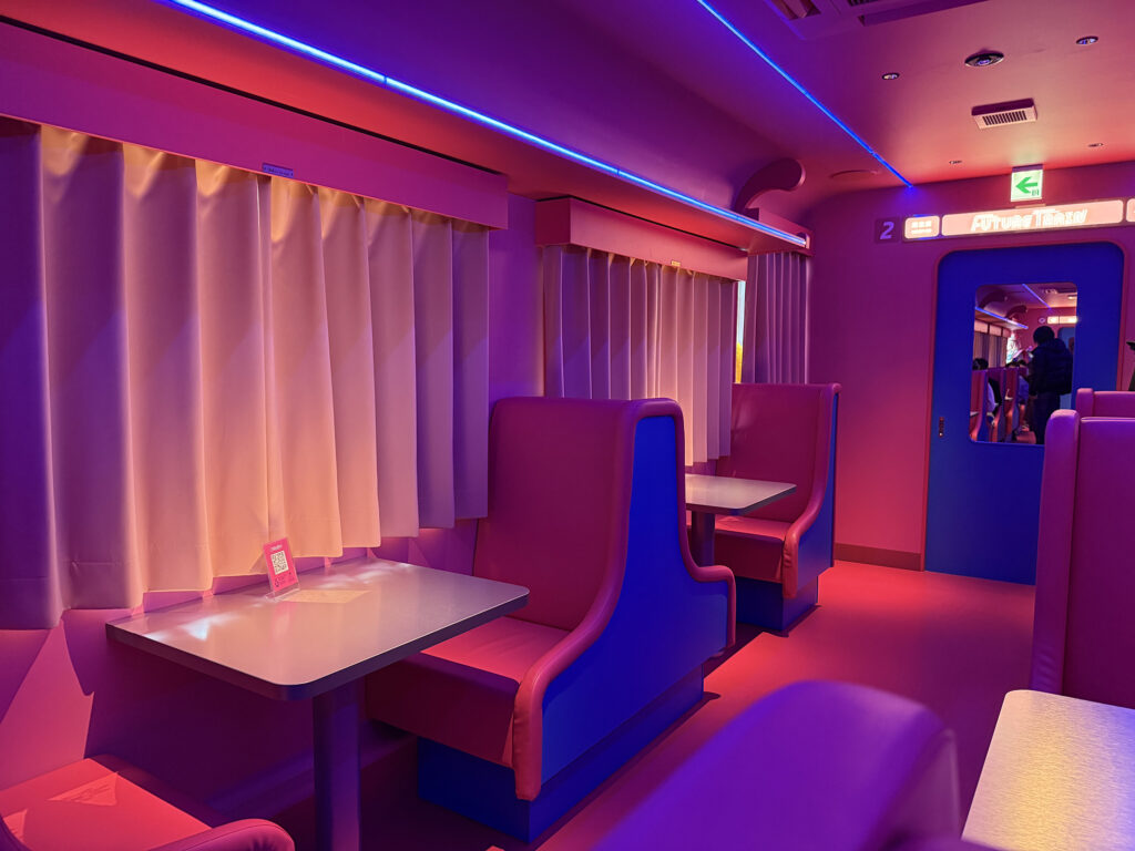 2025年9月オープン。京都・梅小路エリアにある、廃線高架上を活用した列車型エンターテインメントレストラン。実際に運行していた特急サンダーバード(681系)の車両を再活用し、「未来行きの列車が停車するプラットホーム」がコンセプト。きゃりーぱみゅぱみゅの世界観を手がけた増田セバスチャンが携わったこともあり、かなり奇抜なデザインが特徴的。