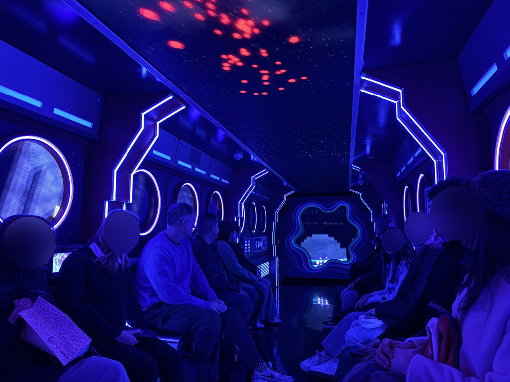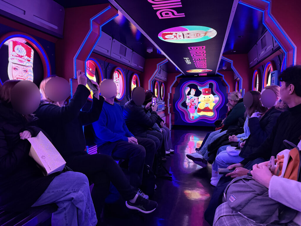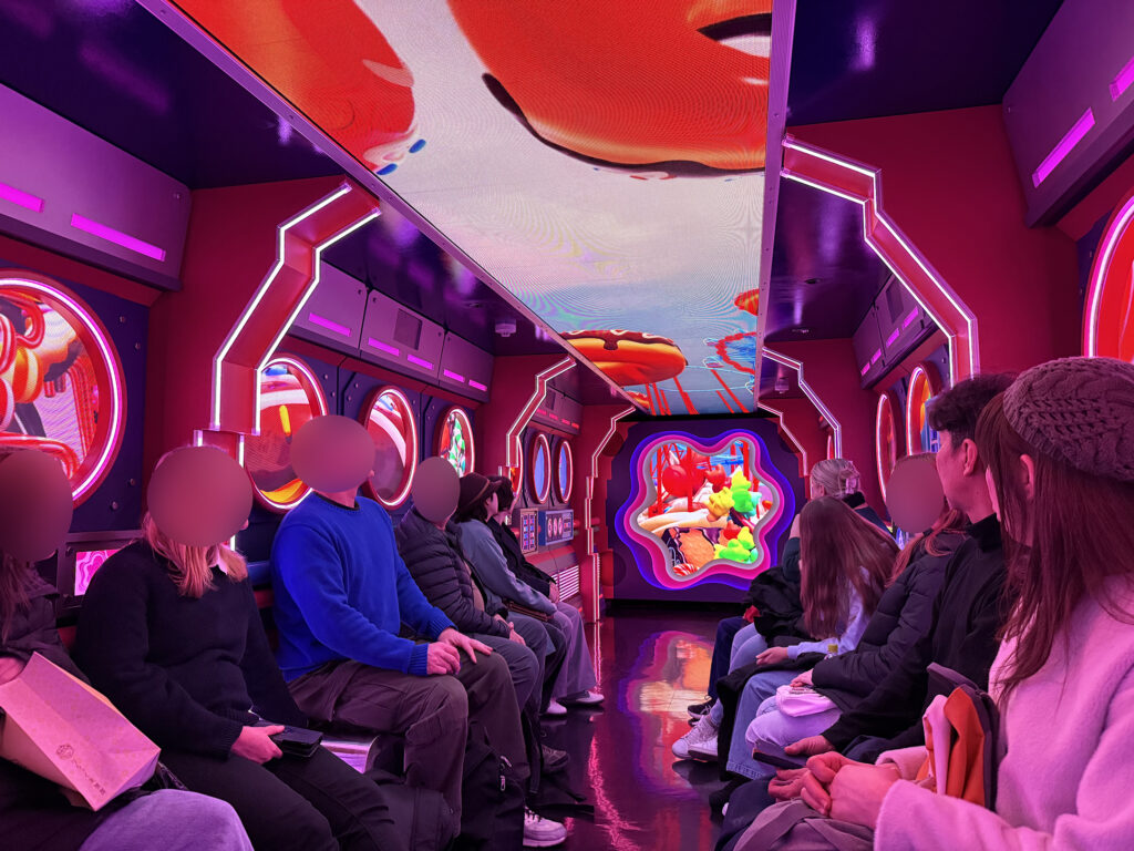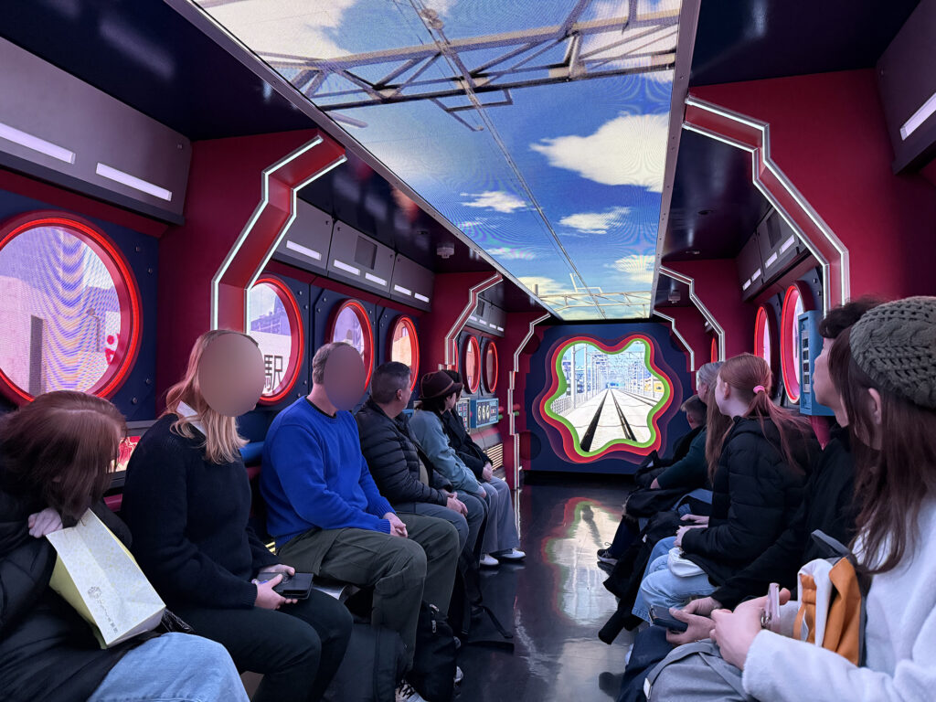 車両の中で、座って鑑賞するタイプのアトラクション。
