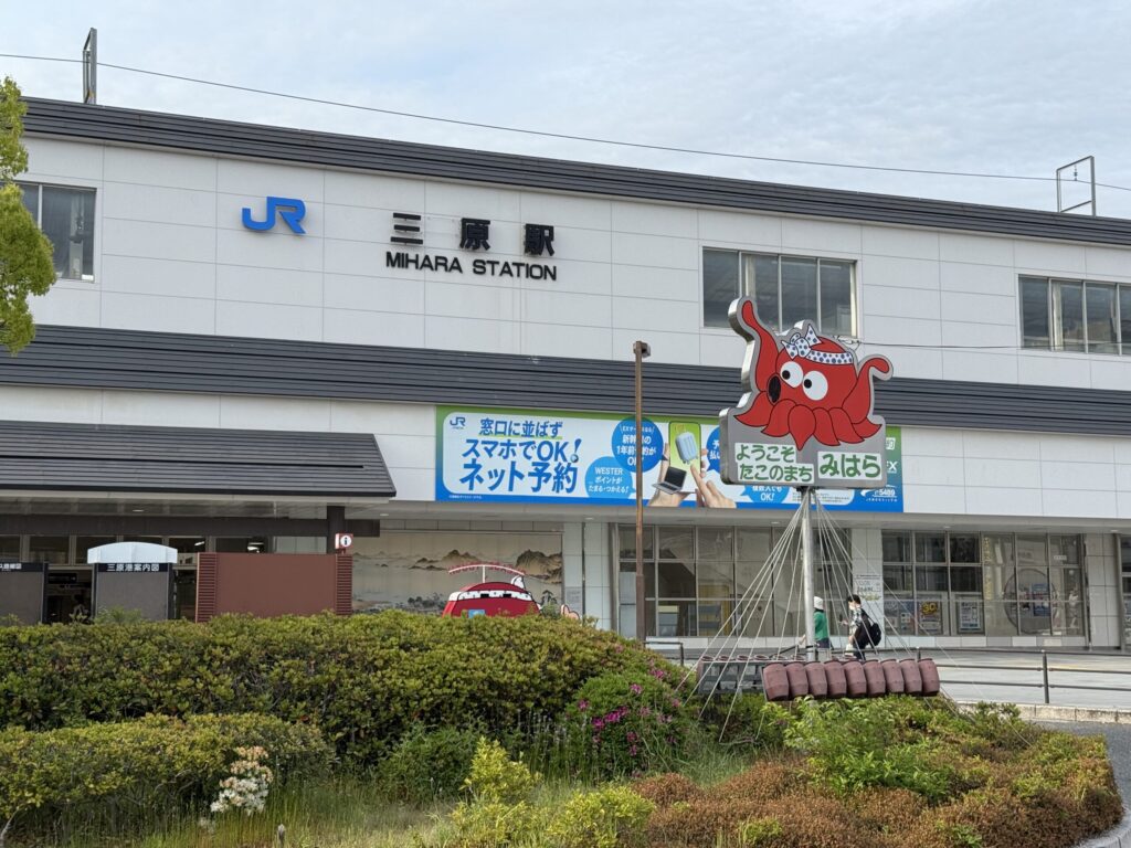 筆者が大好きな大久野島(うさぎ島)へ行くための中継として訪れた街。せっかくなので、ガッツリ駅周辺を散策。三原は瀬戸内でも有数のマダコの産地だそうで、あちこちに「タコ」のモニュメントや看板が。グルメもタコ料理が多め。三原港は駅から徒歩10分ほどと近く、また大久野島に行くときには寄り道したい!
