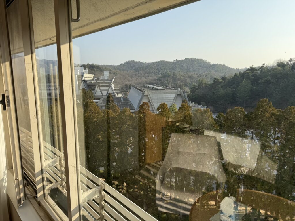 お部屋からの景色。こちらはエントランス(国際会館)側。