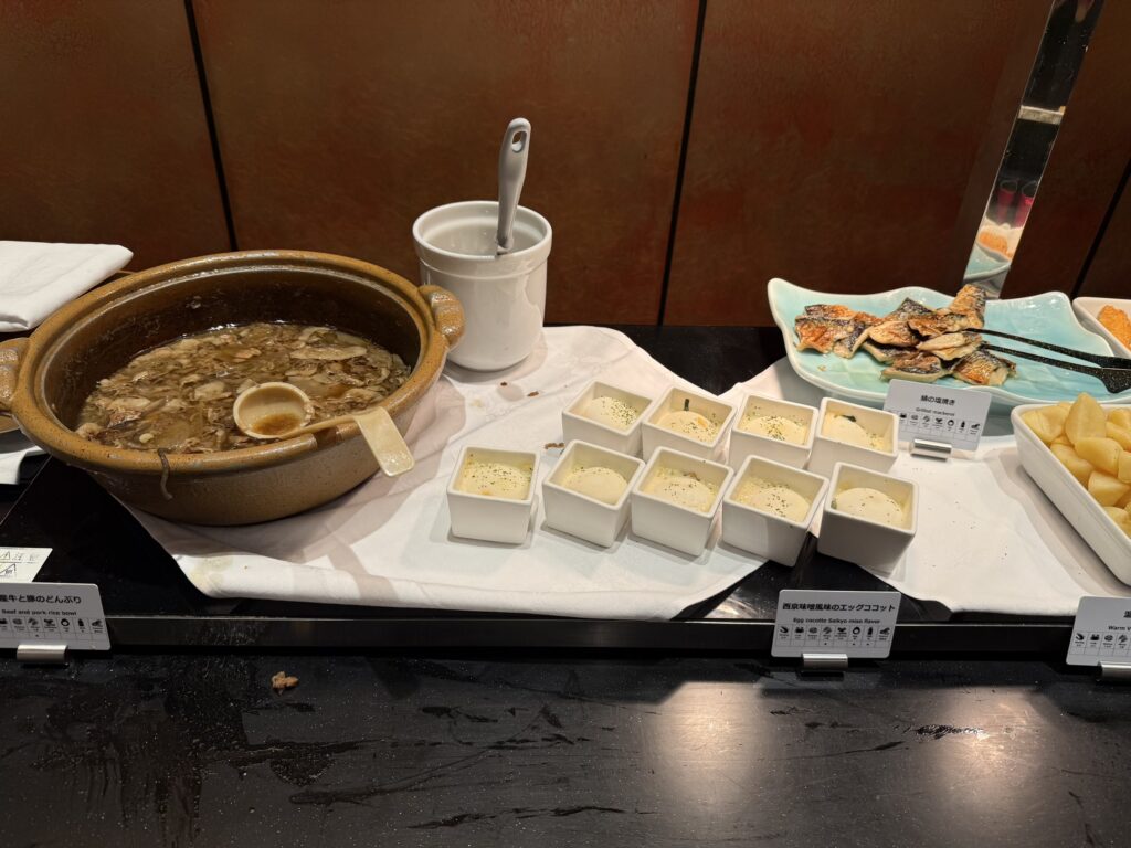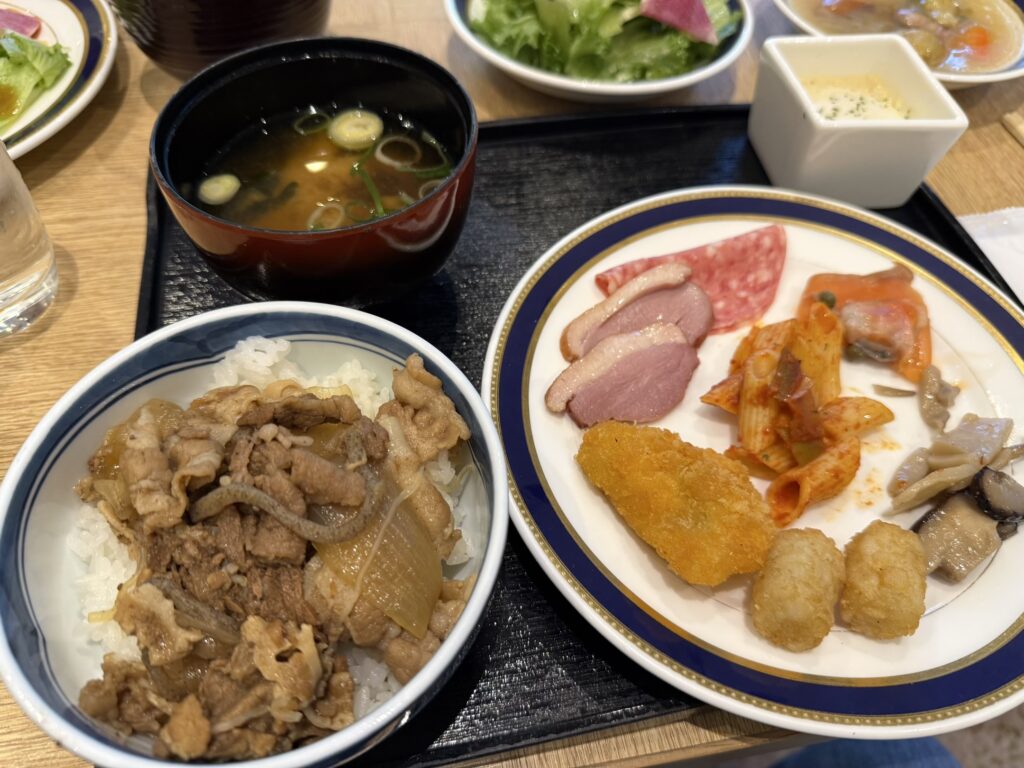 ホテル朝食の名物? 卵のライブキッチンはありませんでしたが、注目すべきは牛丼!