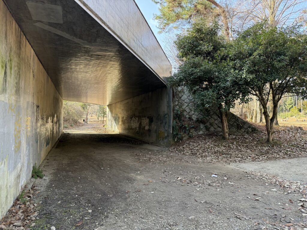 国際会館駅とは反対方面へ進み、小さな通路を降りて公園へ。
