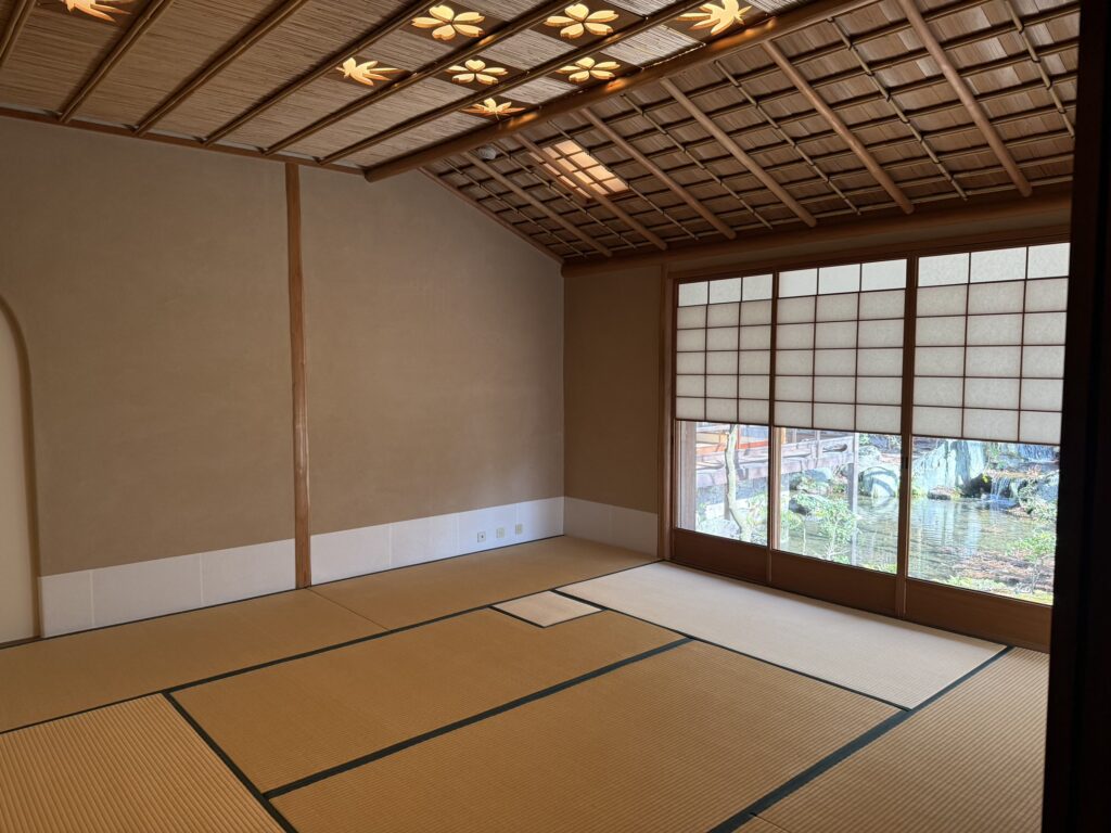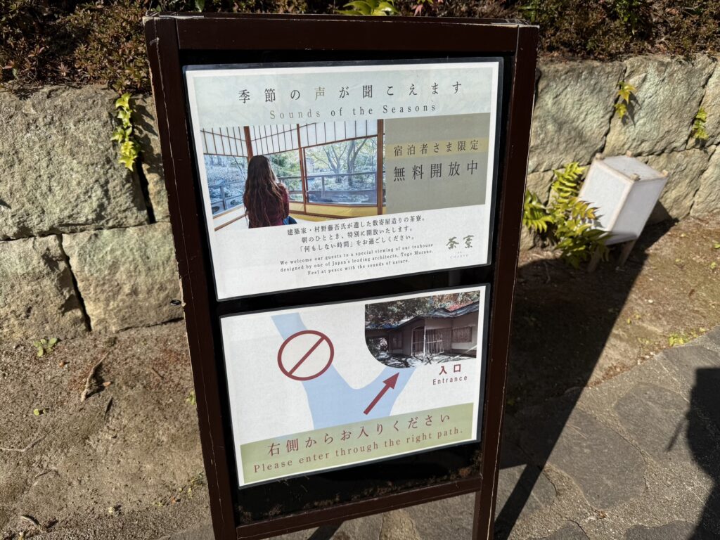 ホテル外、エントランスとは反対側には、無料開放(朝9:00~11:00)している数寄屋造りの茶寮。こちらは宝ヶ池公園散策後、チェックアウト前にやってきました。